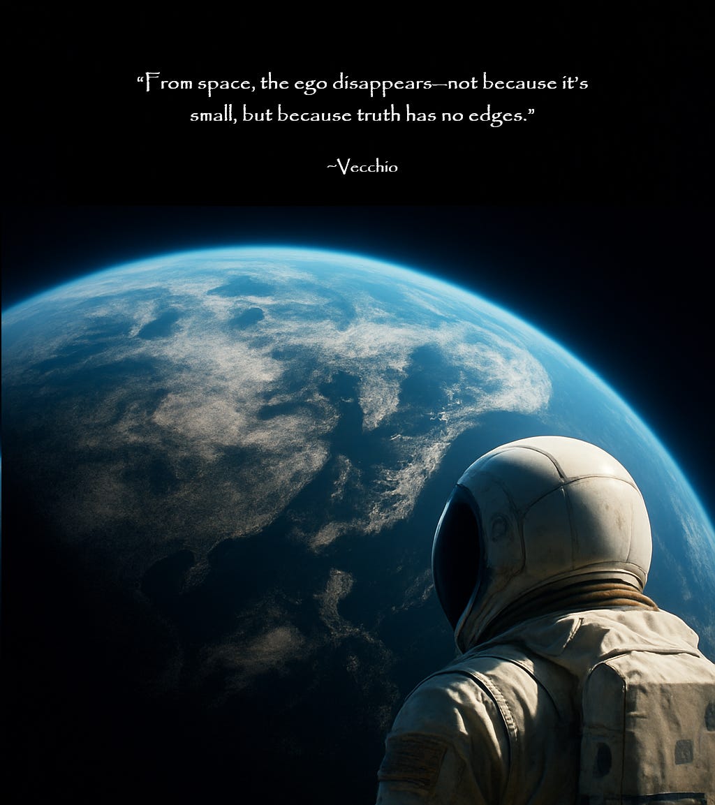 This is the real overview effect. The moment ego’s orbit relaxes, perception unbends, and life reveals its natural order. The curvature of suffering softens. The lie of centrality ends. Presence, not power, becomes the point.